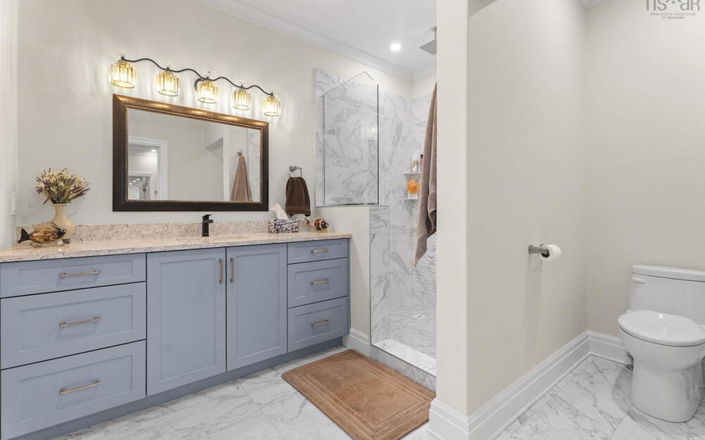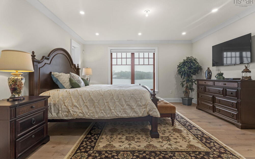 Set on picturesque Marvins Island, this stunning waterfront home offers more than 4,200 square feet of refined living space and 273 feet of pristine waterfrontage. The main level is thoughtfully designed with a spacious primary bedroom featuring a 3-piece ensuite, along with an office, dining room, kitchen, family room, 2-piece bath, laundry area, and plenty of storage.The lower level presents a generous 2,065 sq. ft. self-contained in-law suite, ideal for extended family or long-term guests. It includes its own primary suite with a 3-piece ensuite, an office, additional 3-piece bath, laundry, a full kitchen, dining area, living room, and ample storage. Outdoors, enjoy a large covered balcony, efficient heat pumps, a relaxing hot tub, and granite countertops throughout the home. The property also features beautiful water views, a fenced yard, exposed aggregate patio and walkways, garden shed, boat house and a private dock—perfect for making the most of waterfront living.